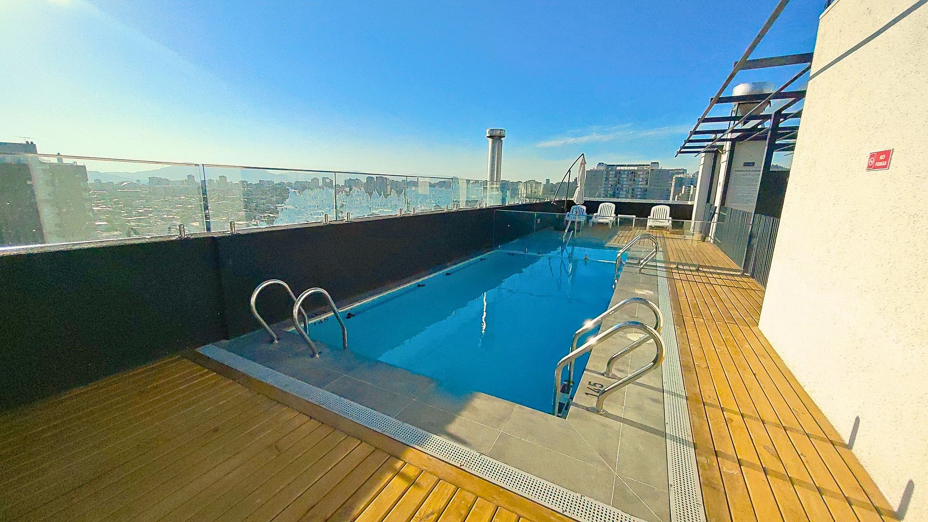 Apartamento luminoso no 15º andar com vistas deslumbrantes para a Cordilheira dos Andes, a leste. Um quarto, banheiro privativo, cozinha americana totalmente equipada e sofá-cama de solteiro. Moderno e acolhedor, no coração de Ñuñoa, um bairro badalado com cafés, restaurantes e parques.
